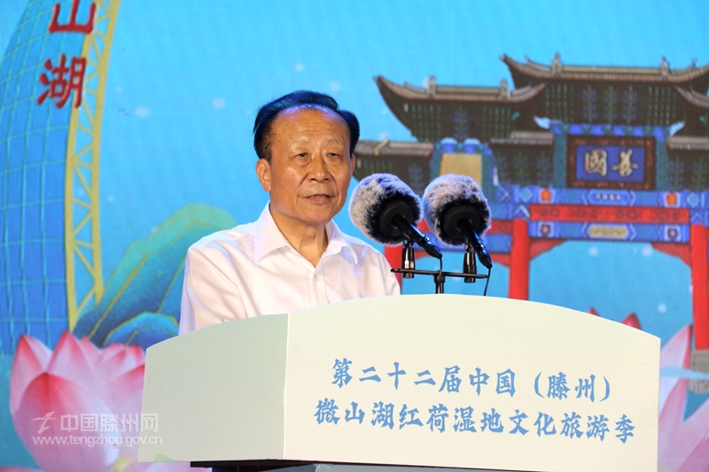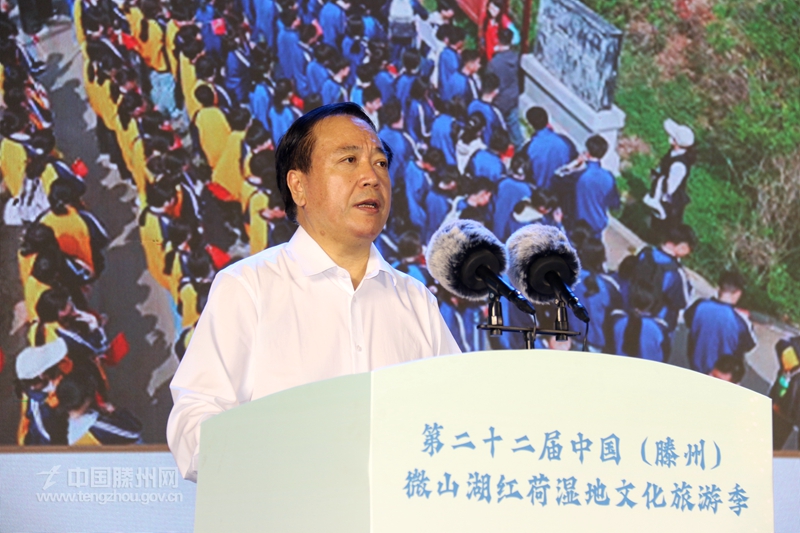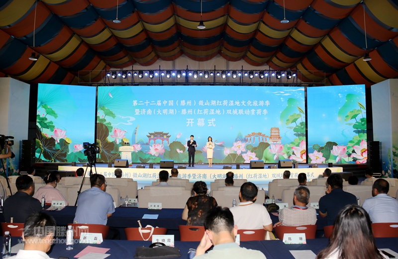 墨子家鄉(xiāng)文韻濃,善城滕州荷正紅。7月26日,備受社會關(guān)注的第二十二屆中國(滕州)微山湖紅荷濕地文化旅游季暨濟南(大明湖)·滕州(紅荷濕地)雙城聯(lián)動賞荷季開幕式舉行。山東省委原副秘書長、省精品旅游促進會會長杜文彬,山東廣電傳媒集團黨委副書記、總經(jīng)理張先,以及山東省發(fā)展和改革委員會、山東省商務廳、山東省總工會、山東省文化和旅游廳相關(guān)負責人等應邀出席開幕式。棗莊、滕州兩級市領(lǐng)導王廣部、劉吉忠、劉曉璐、朱晏辰、薛登峰出席開幕式。