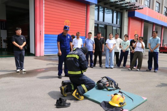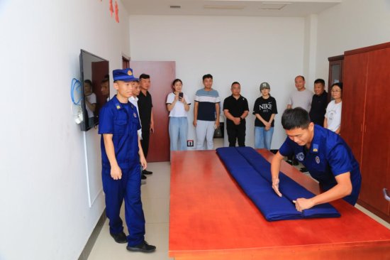 內務觀摩環節,則讓大家看到了消防員嚴謹自律的另一面。在滅火救援班、學習室等場所,整潔劃一的物品擺放、棱角分明的 “豆腐塊” 被子令人眼前一亮。指戰員現場演示了被子的折疊方法,細致講解了消防員日常訓練、學習的作息安排,這種 “于細微處見真章”的作風,贏得了職工們的連聲贊嘆。
