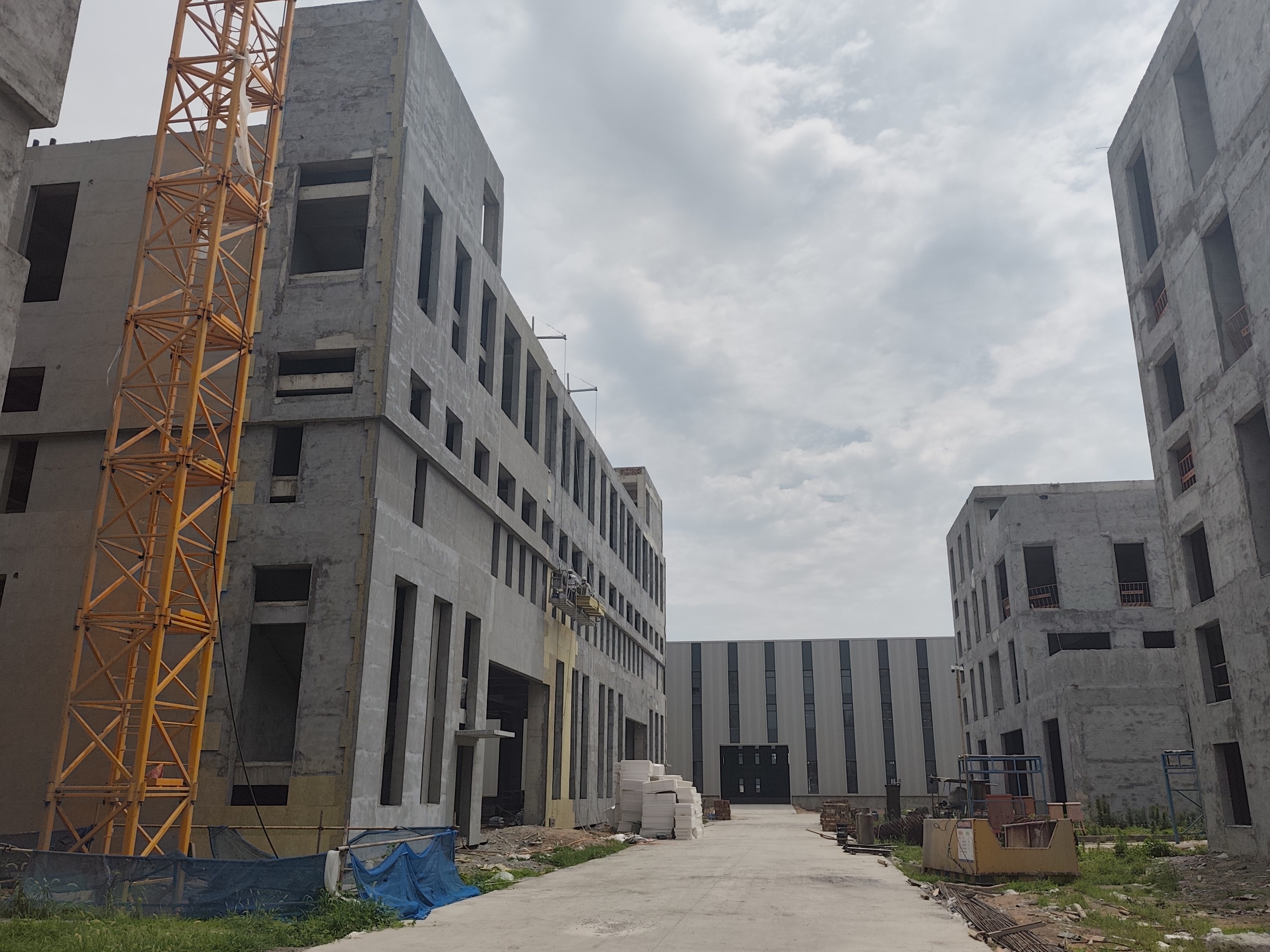 A1、A2、A5、A6廠房散水夯實完成;A3廠房屋面防水施工完成;A4廠房外墻保溫完成;A5廠房消防系統施工完成,橋架安裝;B1廠房外墻漆完成50%;B2、B3廠房屋面防水施工;B4廠房外墻漆完成;B5、B6廠房內墻抹灰完成90%;C3廠房屋面、墻面拉條安裝;D3廠房屋面頂板施工完成70%;P1外墻砌筑;P2磚胎模砌筑完成,防水施工。